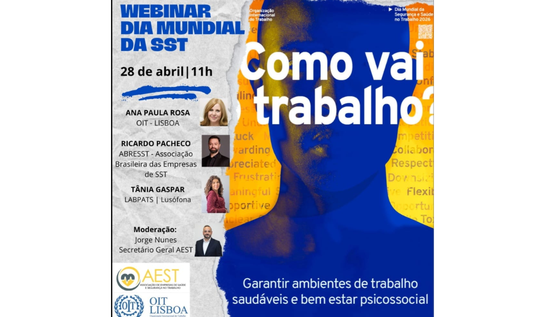A ABRESST (Associação Brasileira das Empresas de Saúde e Segurança do Trabalho) consolida seu protagonismo internacional ao integrar, como uma das principais vozes do Brasil, o webinar global promovido em referência ao Dia Mundial da Segurança e Saúde no Trabalho, no próximo dia 28 de abril, às 11h. A iniciativa reúne especialistas, lideranças institucionais e representantes de entidades de diferentes países em torno de um dos temas mais críticos da atualidade: os riscos psicossociais no ambiente laboral.